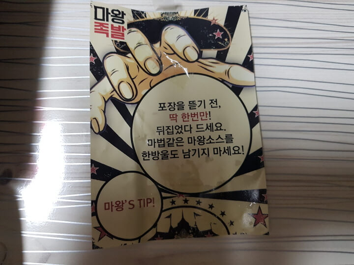 비닐봉지로 잘 묶여 있습니다. 날씨가 너무 더우니까 매운 게 당겼는데 남편이 요즘엔 마왕족발이 핫하다고 주문하더라구요 족발 위에 쫄. 그런데 보쌈 진짜 너무 부드러웠답니다.