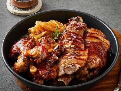 대표 메뉴이면서 가장 기본인 마왕통구이와 불족발 갈릭 소금구이 중에서 하나를 선택해서 반반으로 즐길 수 있도록 구성한 메뉴로 평소 한 가지 맛보다는 여러 가지 메뉴를 접하는 걸 선호하는 소비자들의 취향을 저격할 예정이다. 마왕족발 공식 홈페이지 오븐에서 구워 더욱 부드럽고 담백한 리얼 바베큐 족발. 마왕족발 메뉴 불족발 위에 넓적당면 납작당면 천사세트 중간맛.